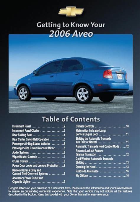 SBL - Download online 2006 Chevrolet Aveo Owners Manual mobipocket ManyBooks